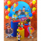 Kit inclui: Painel redondo Trio de cilindros com capas nas cores do tema 3 bandejas 1 vaso de acrílico com bochinho Tema em MDF Bolo fake 2 hastes para balões